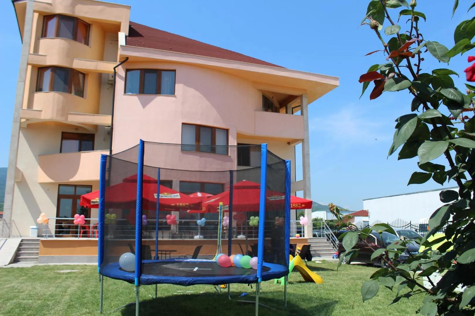 Хотела е разположен в края на Асеновград, за да гарантира тишина и спокойствие. Ако имате кола под наем, ще стигнете до центъра за минути. Предлага се безплатно паркинг и Wi-Fi. Цените са достъпни за всеки. Ако смятате да стоите в хотела през по-голямата част от престоя си, може да се възползвате от билярда, така че няма да ви е скучно. В двора има различни занимания за деца.